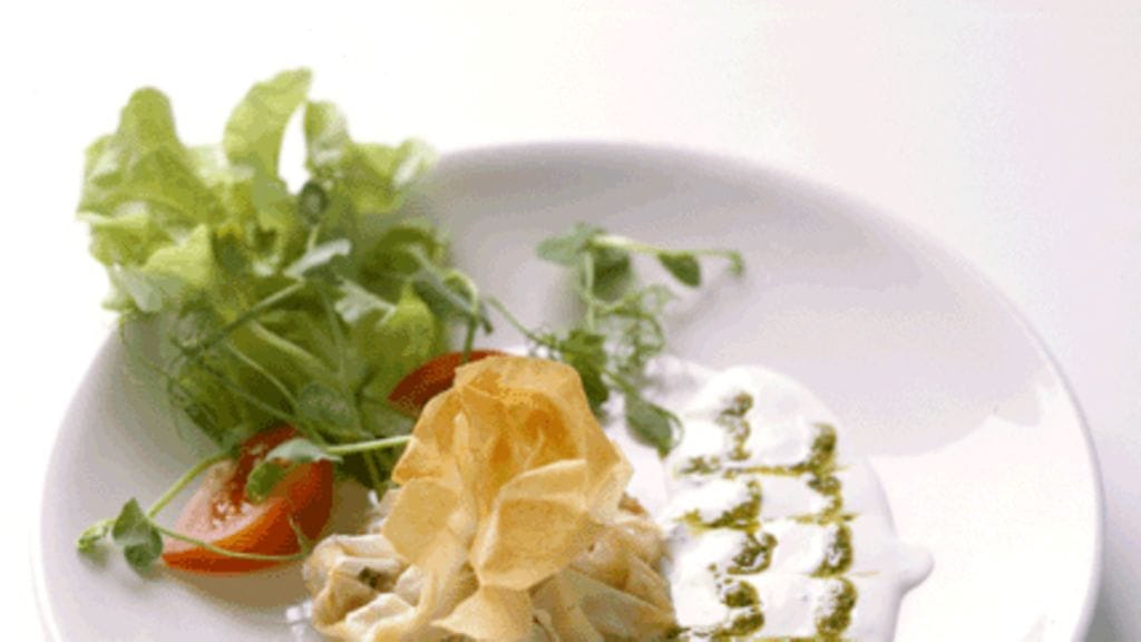 Kuumenna uuni 175 asteeseen. Ota fillotaikina-arkit esille. Voitele 2 arkkia öljyllä ja aseta öljytyt arkit kuivien arkkien päälle.