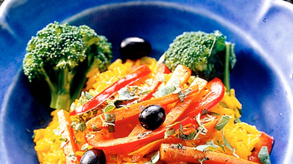 3. Kun riisi on valmista, kääntele varoen vihannekset paellaan. Mausta ja kuumenna kaikki hyvin ennen tarjoilua. Tarjoile mielellään tomaattikastikkeen kera.
