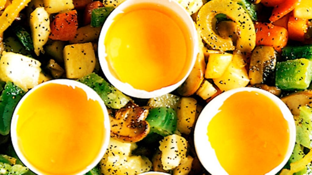3. Kääntele mukaan sieniseos, mausta suolalla ja pippurilla ja tarjoile munankeltuaisten kanssa.