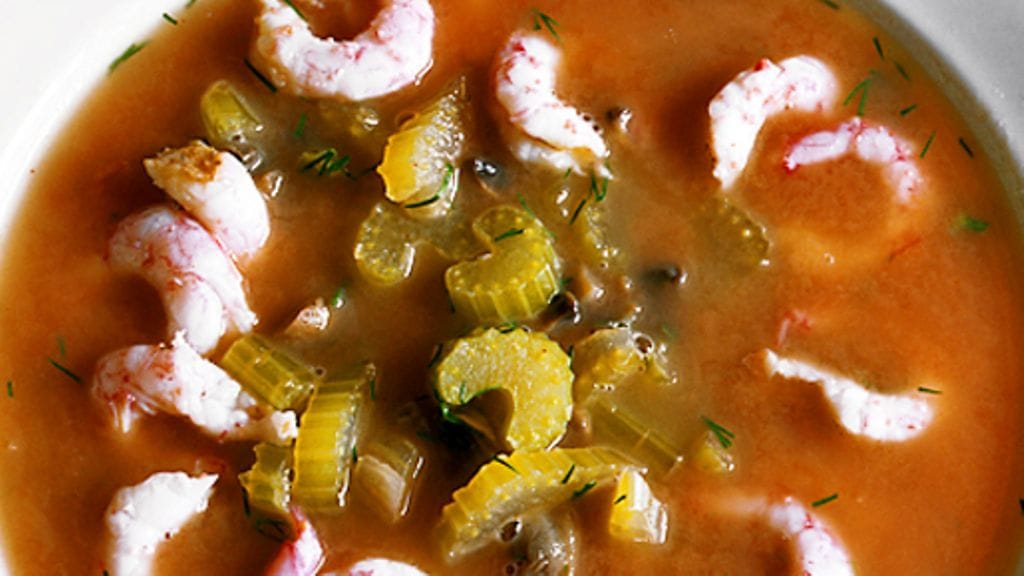 3. Laita kuorittuja katkarapuja keittolautasten pohjalle, kaada päälle keitto. Ripottele päälle tilliä, tarjoile.