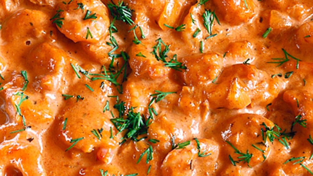 Maukkaasti maustettu katkarapumuhennos, joka tarjoillaan vastakeitetyn riisin tai pastan kera. Arvostettu iltaruoka. Tarjoile maukkaan leivän kera.