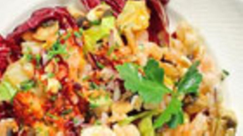 Lisää kurkku- ja paprikakuutiot ja tillisilppu. Sekoita.