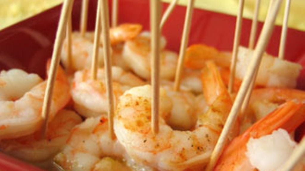 Kumoa pannun sisältö tarjoiluastiaan. Lävistä katkaravut puisilla cocktailtikuilla ja tarjoa.