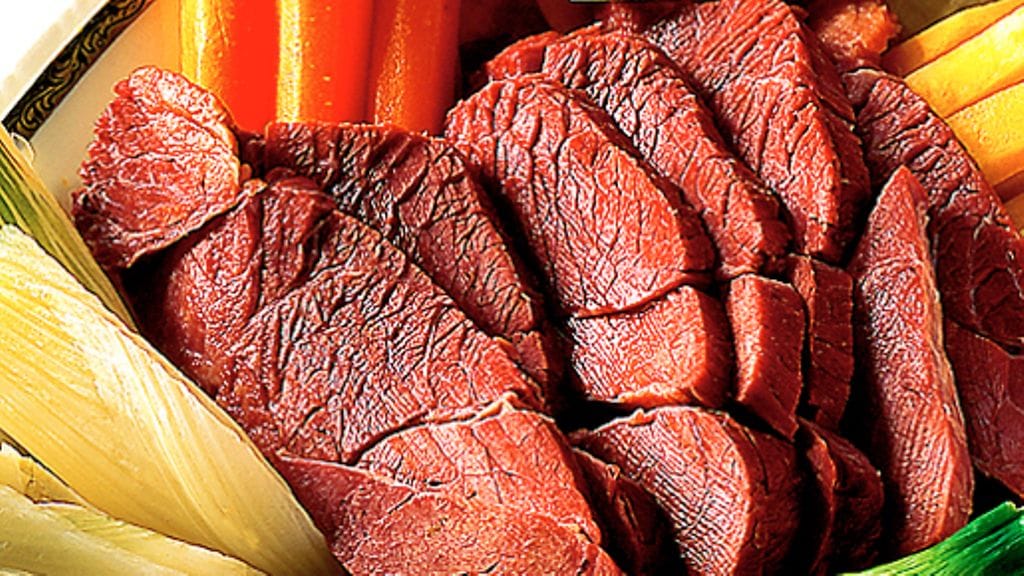 2. Keitä lihaa kunnes se tuntuu murealta, kun pistät sitä haarukalla, n. 2 tuntia. Nosta liha padasta ja poista luu. Säästä liemi ja siivilöi se. Laita vastakeitetty häränrinta painon alle vuokaan (laita lihan päälle leivinlauta ja paino) ja anna jäähtyä.