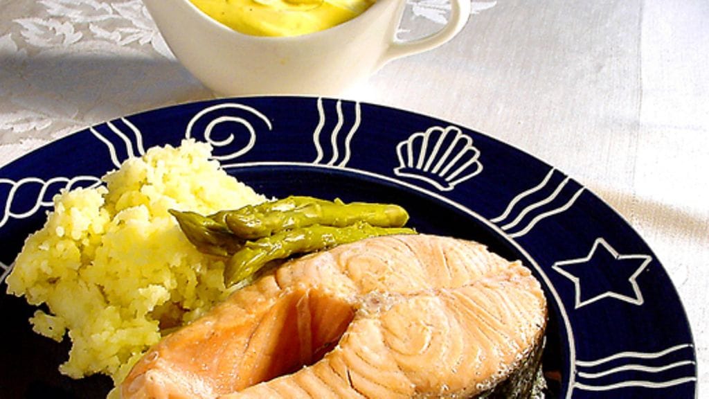 3. Jos haluat lämmintä sahramikastiketta, kuumenna se. Tarjoile se muuten sellaisenaan vastakeitetyn lohen, perunoiden ja parsan kera. Vinkki: Jos sinulla on kotona tilkka valkoviiniä, lohen voi mainiosti myös keittää viinissä.