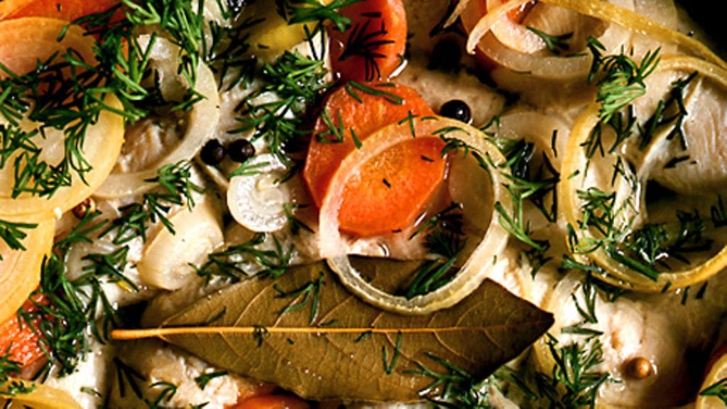 3. Hauduta silakoita miedolla lämmöllä 6-8 minuuttia, anna niiden sitten jäähtyä liemessä. Tarjoile vastakeitettyjen perunoiden kanssa.