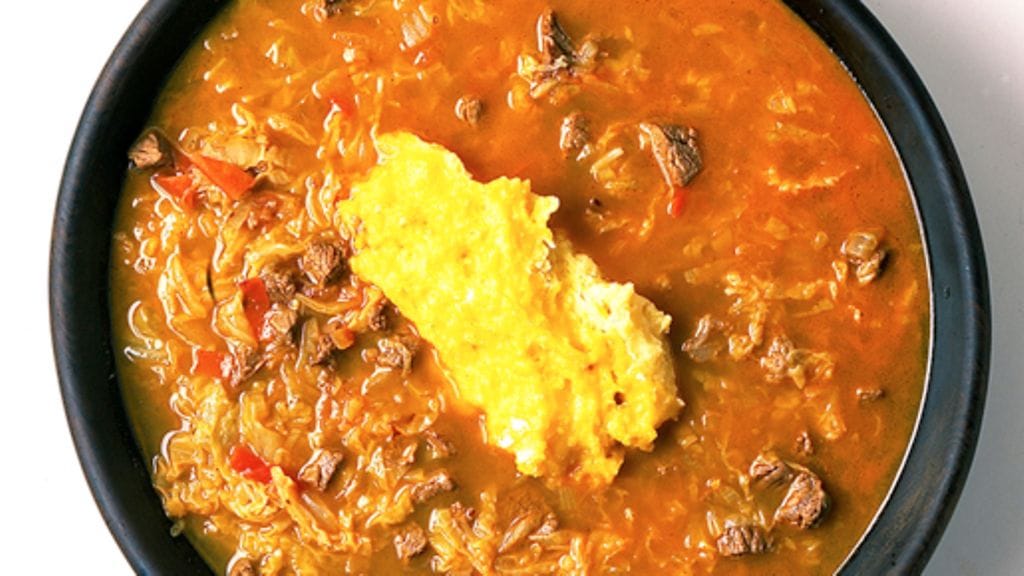 3. Keitä toisessa kattilassa vettä ugaliin (maissimykyyn). Vatkaa sekaan maissijauhot, sekoita koko ajan kunnes seos sakenee. Tarjoile keitto maissimykyn kera.