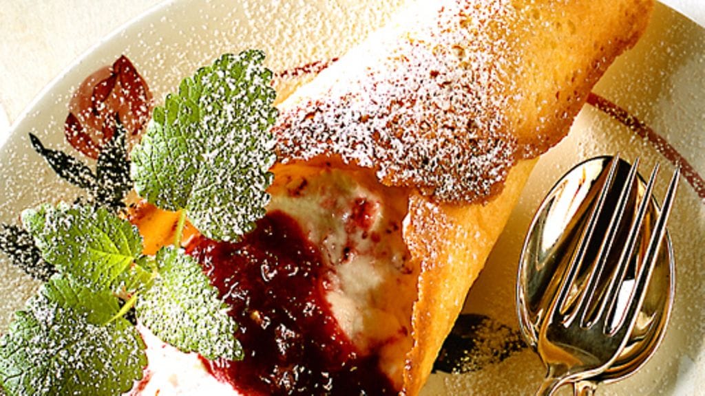 1. Kuumenna uuni 175 asteeseen. Sekoita munat, sokeri, jauhot ja kaneli tasaiseksi taikinaksi. Piirrä leivinpaperiin haluamasi kokoisia ympyröitä.