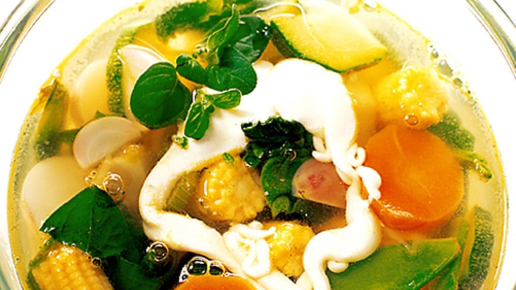 2. Kuumenna vihannesliemi kiehuvaksi ja lisää vihannespalat, hitaammin kypsyvät ensin. Keitä 5-10 minuuttia, älä ylikypsiksi, vaan jätä ne mieluummin hieman rapeiksi. Halutessasi kuutioi broilerin fileetä mukaan kiehumaan ennen kuin lisäät liemeen vihannekset. Kananlihan täytyy olla läpikypsää. Tarjoile keitto esim. leivän ja juuston kera.
