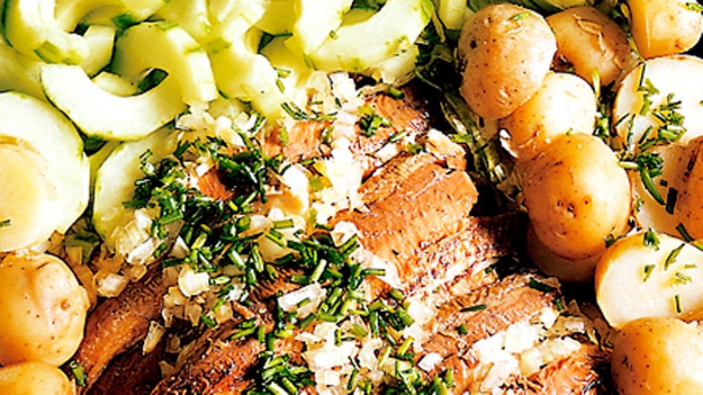 Savusilakat ovat kätevää kesäruokaa, ja ne sopivat äärettömän hyvin uusien perunoiden kanssa. Valikoi oikein pieniä ja hienoja perunoita ja harjaa ne kunnolla, jolloin niitä ei tarvitse kuoria.