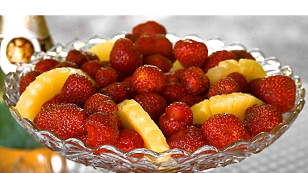 2. Sekoita marjoja ja hedelmäpaloja kulhoon sokerin kera. Kaada päälle viini, anna vetäytyä muutama tunti ennen tarjoilua.