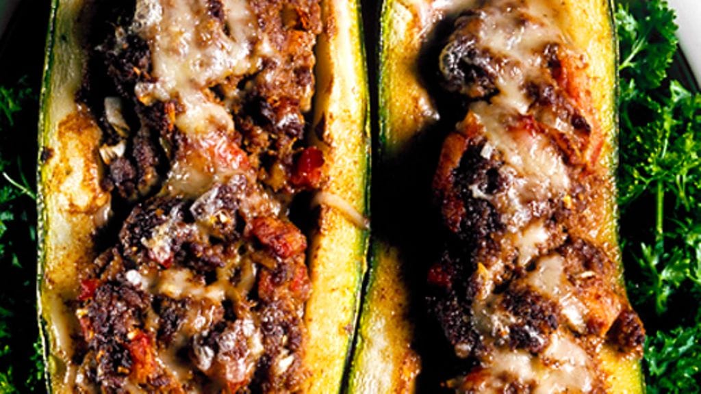 4. Täytä kesäkurpitsat, ripottele päälle juustoa ja korppujauhoja ja gratinoi uunissa n. 20 minuuttia.