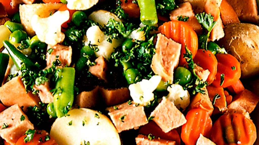 1. Kuutioi perunat. Laita perunat ja vihannekset pataan. Murusta päälle liemikuutio ja lisää vesi. Kuumenna kiehuvaksi.