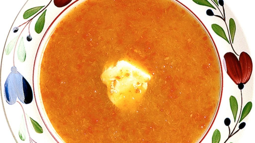 3. Survo kasvikset tai soseuta ne tehosekoittimella. Sekoita kasvissose ja kasvisten keitinliemi padassa. Kiehauta, lisää ruohosipuli ja mausta suolalla ja pippurilla. Lisää juuri ennen tarjoilua keiton pinnalle nokare kylmää voita ja hienonnettua persiljaa.