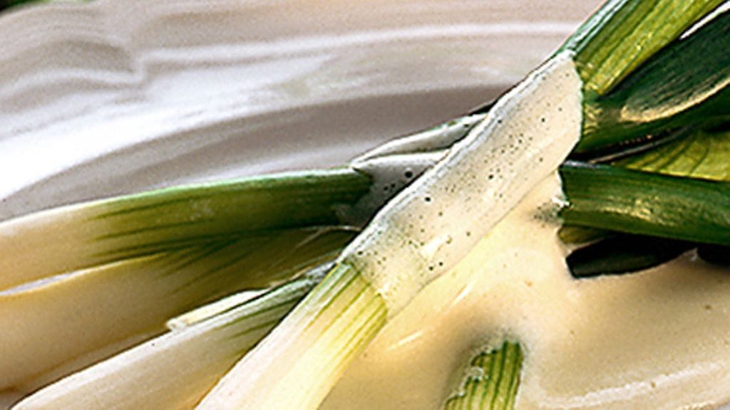 2. Puhdista sipulit ja laita ne kattilaan. Kuumenna siinä kevyesti suolattua vettä ja keitä n. 5 minuuttia, kunnes sipulit ovat täysin pehmeitä. Valuta lävikössä.