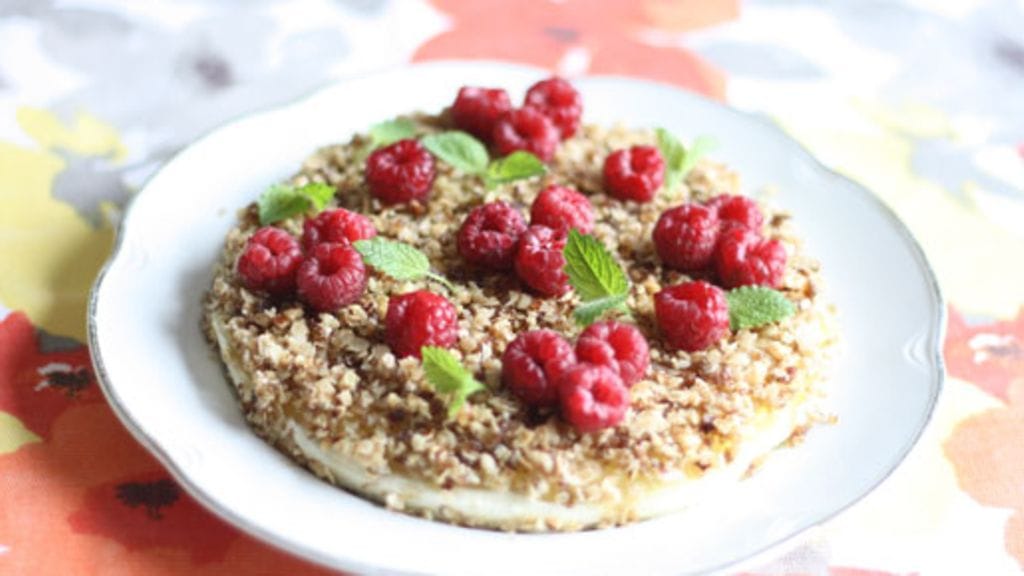 Vaahdota kerma. Sekoita keskenään rahkat ja hunaja. Raasta joukkoon noin 1 tl sitruunan kuorta. Kääntele kermavaahto joukkoon.