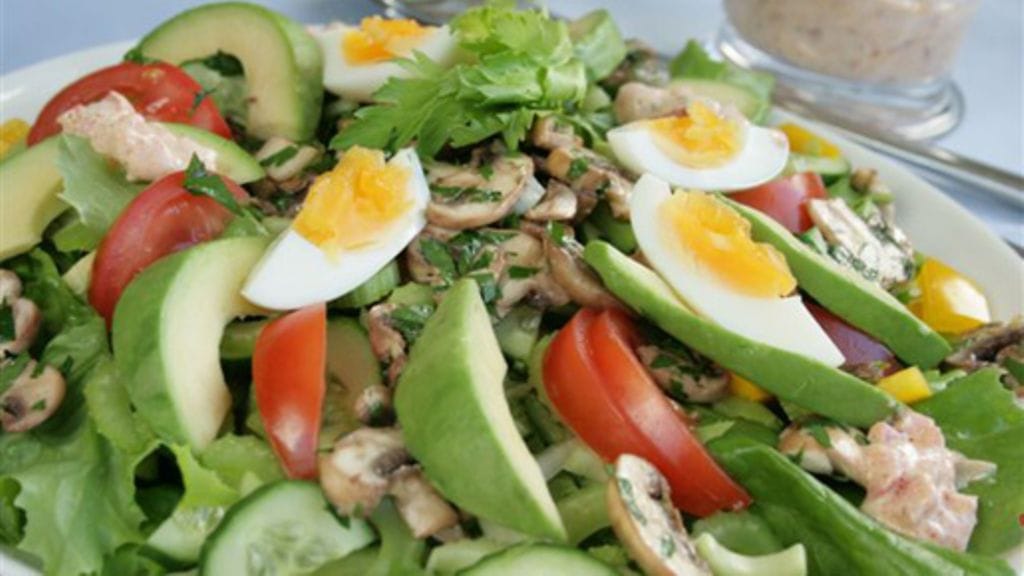 Keitä kananmunat koviksi, jäähdytä kylmässä vedessä ja kuori. Viipaloi herkkusienet ja paista niitä omassa liemessään. Lisää joukkoon puristettu valkosipuli. Mausta sienet suolalla ja mustapippurilla ja sekoita joukkoon silputtu persilja. Kaada jäähtymään lautaselle.