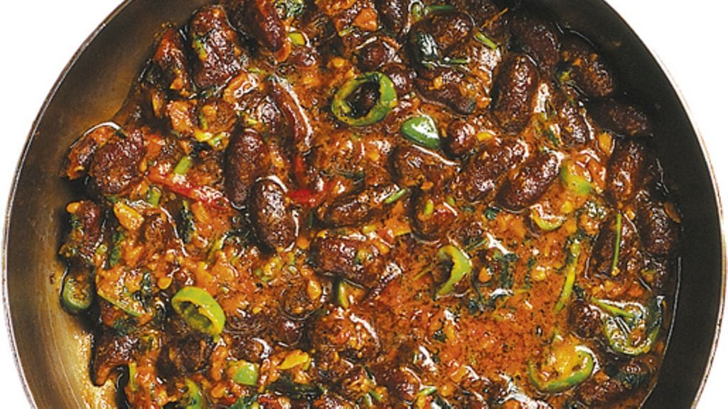 3. Lisää pavut ja hauduta 5 minuuttia. Kuori pois ylimääräinen öljy. Koristele hienonnetulla, tuoreella korianterilla.