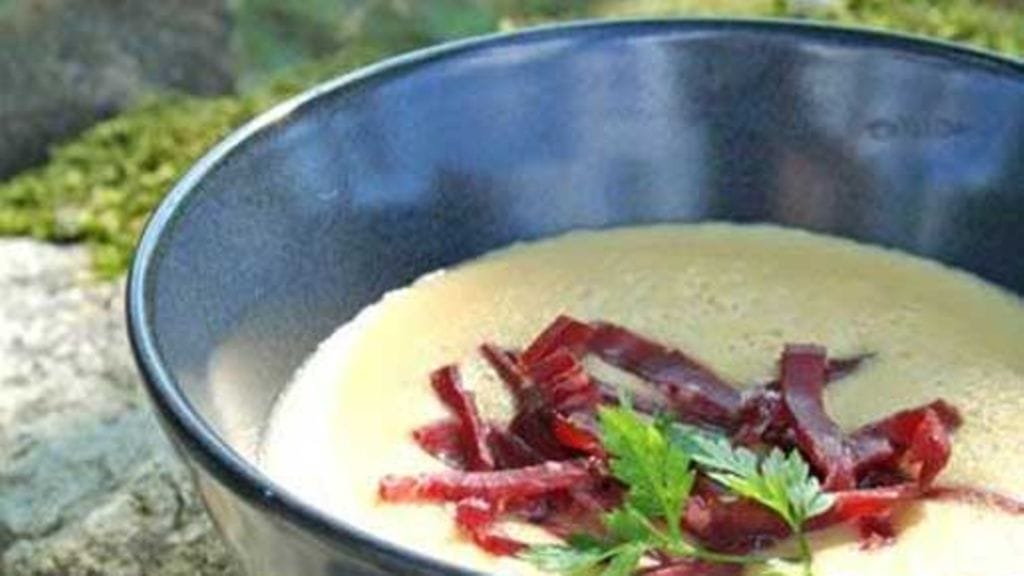 Hienonna ja kuullota sipuli kattilassa. Lisää kikherneet ja kanaliemi. Mausta paprikalla, suolalla ja pippurilla. Hauduta miedolla lämmöllä 10–15 minuuttia. Lisää kerma, nosta kattila levyltä ja soseuta keitto sauvasekoittimella. Leikkaa poroleikkele ohuiksi suikaleiksi. Annostele keitto kulhoihin ja ripottele porosuikaleet päälle. Koristele lopuksi kirvelillä.