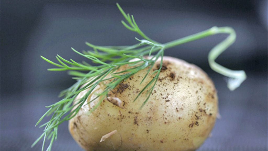 Raota kypsien perunoiden foliota sen verran, että saat puristettua perunaa koholleen ristiviillon kohdalta. Tarjoa täytteiden kanssa.