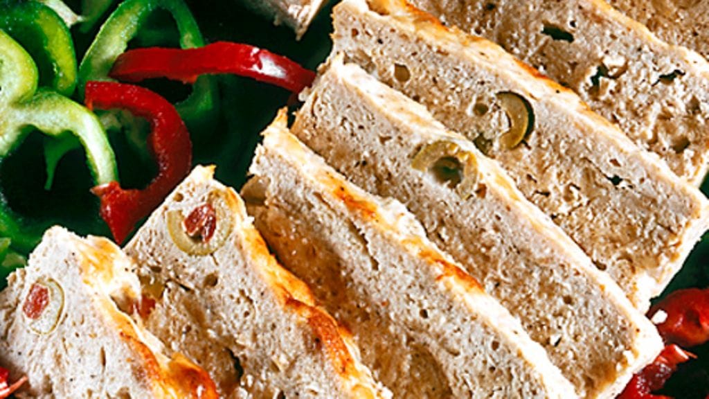 3. Täytä voideltu, pitkulainen uunivuoka taikinalla, laita väliin oliiveja.