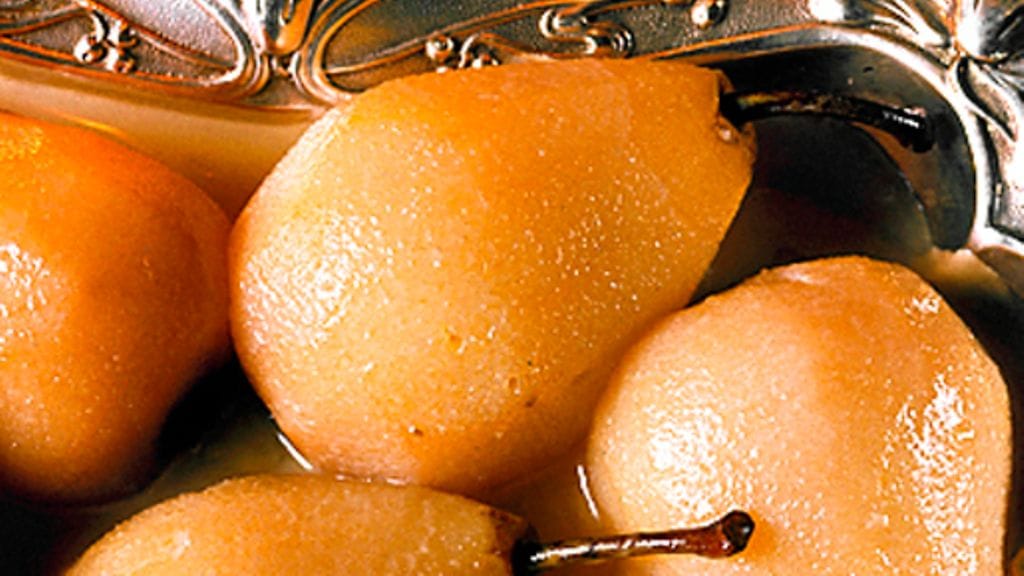 3. Kuori päärynät ja hauduta ne liemessä kannen alla sopivan pehmeiksi.
