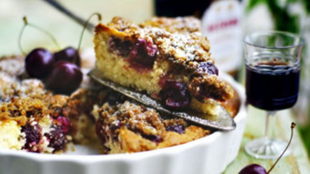 Nypi kulhossa pehmeä voi, sokeri ja vehnäjauhot. Kaada muruseos kirsikoiden päälle. Kypsennä piirakkaa 200-asteisen uunin alatasossa noin 35-40 minuuttia. Anna piirakan jäähtyä ja vetäytyä kunnolla ennen tarjoamista. Tarjoa vaniljajäätelön tai löysäksi vatkatun kermavaahdon kera.