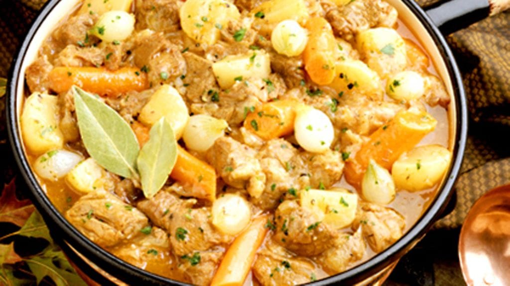 1. Paloittele liha pienemmiksi paloiksi. Laita palat pataan ja kaada päälle vesi. Kuumenna kiehuvaksi ja kuori vaahto pois huolellisesti. Lisää suola, mustapippuri, laakerinlehti, timjami ja persilja. Keitä pataa hiljalleen kannen alla 1 ¼ tunti.