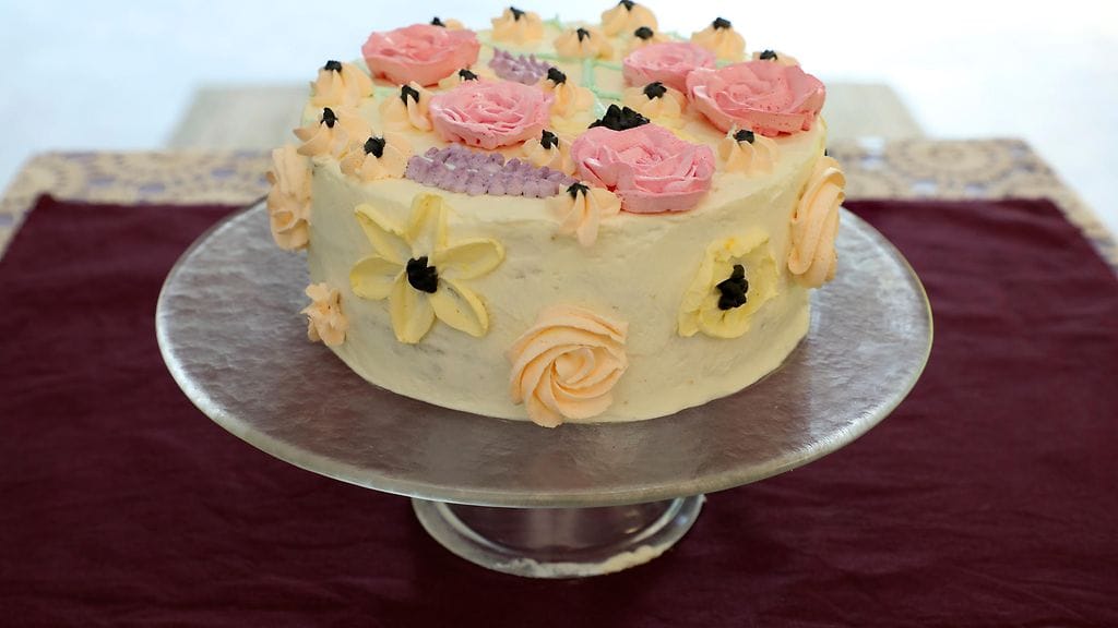KAKKUPOHJA: Vaahdota huoneenlämpöinen voi ja sokeri. Lisää kananmunat joukkoon yksitellen. Sekoita kuivat aineet keskenään ja kääntele ne vaahdon sekaan. Raasta sitruunan kuori ja lisää se taikinaan. Voitele kolme noin 20cm kakkuvuokaa ja jauhota kookoshiutaleilla. Paista 170-asteisessa uunissa noin 20min.