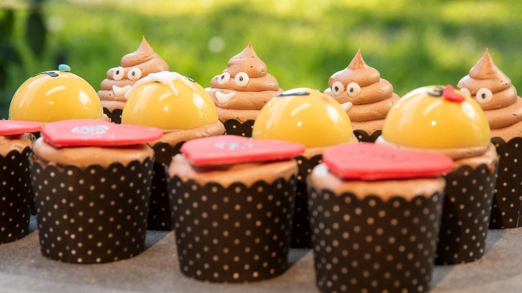 KUPPIKAKKUPOHJA: Laita uuni lämpenemään 175 asteeseen kiertoilmalle. Asettele 12 kuppikakkuvuokaa pellille. Suihkauta vuokiin vuokasprayta. Vaahdota voi ja sokeri kuohkeaksi vaaleaksi vaahdoksi. Lisää kananmunat yksitellen ja sekoita hyvin joka lisäyksen jälkeen. Purista appelsiinista mehu ja raasta kuori. Sekoita vehnäjauhot ja leivinjauhe keskenään. Lisää puolet jauhoseoksesta voi-sokerivaahtoon koko ajan sekoittaen. Lisää sen jälkeen ½ dl appelsiinimehua, kerma ja kuoriraaste. Lisää loput kuivat aineet ja sekoita seos tasaiseksi.
