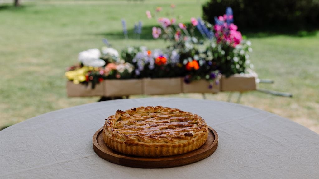 kerrallaan. Taikina on valmis, kun se ei tartu sormiin. Taikina tulee sekoittaa nopeasti, jotta se pysyy kiinteänä. Tee taikinasta pallo ja leikkaa kahteen osaan. Kääri taikinat kelmuun ja laita kylmään.