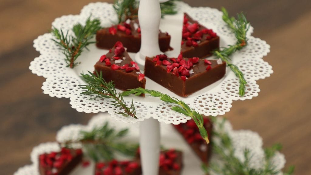 Kun toffee on valmista lisää joukkoon paloiteltu suklaa, sekä ½ tl sormisuolaa ja sekoita tasaiseksi. Kaada seos leivinpaperilla vuorattuun vuokaan ja lisää päälle pipareita ja pakastekuivattua vadelmaa ennen kuin se ehtii jähmettyä. Anna toffeen jäähtyä hetki huoneenlämmössä ja nosta se sitten jäähtymään jääkaappiin. Paloittele sopiviksi paloiksi ja ripottele päälle hieman sormisuolaa.