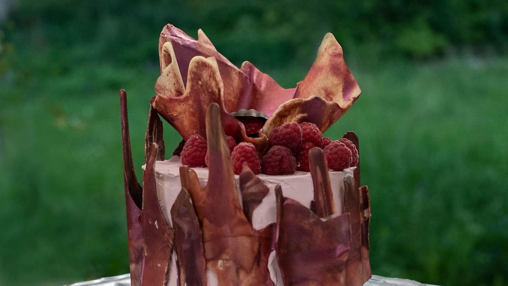 TOIMI NÄIN: Valmista pohjat. Laita uuni lämpenemään 175 asteeseen. Vuoraa kolme PME-kakkuvuokaa leivinpaperilla. Rouhi ruby. Sekoita kuivat aineet kevyesti yleiskoneessa. Lisää piimä, vesi ja öljy ja sekoita tasaiseksi massaksi. Lopuksi kääntele nuolijalla suklaarouhe joukkoon. Paista uunin alatasolla 30-40 min tai kunnes tikku tulee puhtaana ulos. Jäähdytä.
