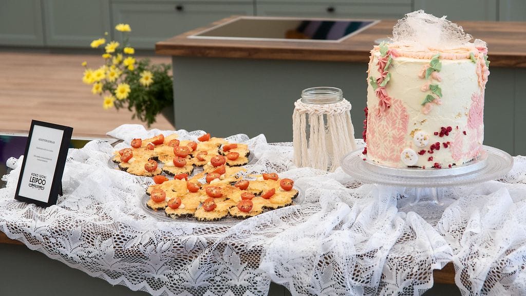 VINKKI: Kakusta tulee painava, joten sen siirtämistä helpottavat kunnon kakkutuet ja paksu kakkupahvi alimmaisena.