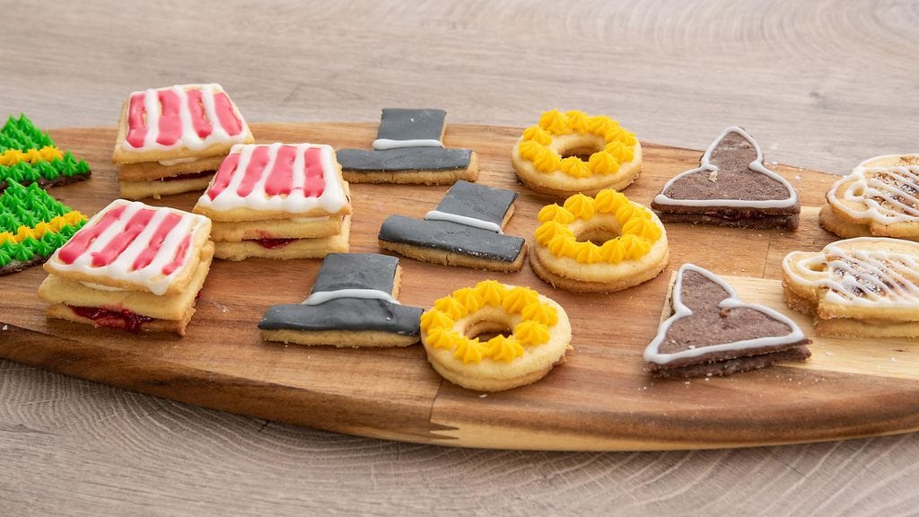 VINKKI: Tee sokerikuorrutteesta tarpeeksi paksua, niin sitä on helpompi pursottaa. Älä keitä sitruunasiirappia liian paksuksi, paksuuntuu reilusti kylmässä. Varo myös, ettei pala pohjaan. Tee jokaista keksiä 1-2kpl extraa varuiksi, jos hajoavat tai koristelu epäonnistuu.
