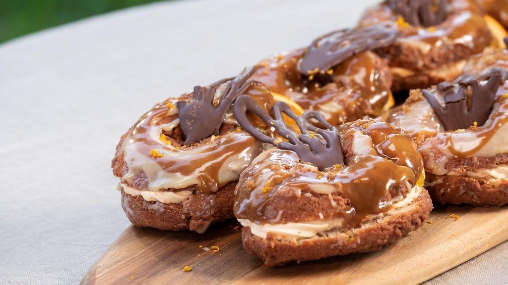 DONITSIT: Lämmitä kattilassa munkinpaistorasva 180 asteeseen. Sekoita kaikki kuivat aineet keskenään. Lisää joukkoon sulatettu voi ja kermaviili. Lisää kananmuna ja raastettu suklaa sekä limen mehu ja raastettu kuori, sekoita tasaiseksi. Pyöritä taikinasta 10 samankokoista palloa. Laita voidellun leivinpaperin päälle. Tee reikä pallon keskelle ja paista varovasti 180 asteisessa öljyssä, paista maks. 3 kpl kerralla. Kun donitsi on kauniin ruskea, niin käännä se ja jatka paistamista toiselta puolelta. Nosta valmiit paistetut donitsit leivinpaperin päälle.