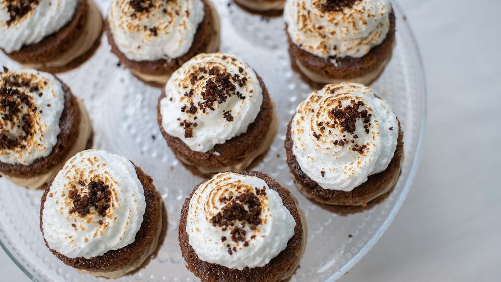 Pursota viimeisenä leivoksen päälle ja paahda marengin pintaa kaasupolttimolla