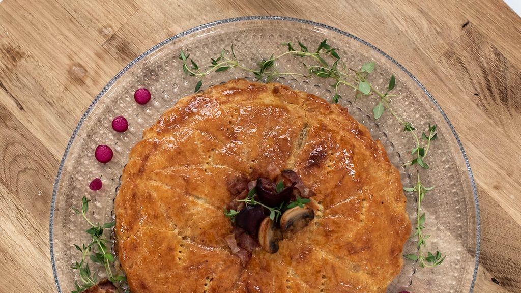 TÄYTTEEN VALMISTUS: Pilko kaalista ja sienestä pientä tasaista kuutiota ja hienonna sipuli pieneksi silpuksi. Laita kaali ja laakerinlehdet kasariin. Kuullota kaalista ylimääräinen neste pois, se on valmista, kun määrä on noin puolittunut. Kuutioi pekoni ja paista se rapeaksi. Samalla voit kuullottaa sipulit paistinpannulla noin 50 g voin kanssa, jonka jälkeen lisää sienet sipulien sekaan. Kuullota sieniä ja sipulia niin kauan, että pintaan tulee vähän väriä Sekoita kaali, sienet ja sipuli sekaisin kasarissa ja lisää sinne suola, pippuri, meirami ja siirappi. Sekoita ainekset hyvin. Jäähdytä täyte