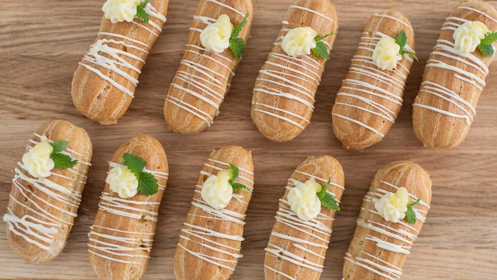 TAIKINA: Lämmitä vesi ja voi kattilassa. Yhdistä jauhot, sokeri ja suola kulhossa. Kun voi on sulanut veden sekaan, lisää jauhoseos ja vatkaa voimakkaasti, kunnes taikina irtoaa kattilan reunoilta. Siirrä monitoimikoneeseen, anna jäähtyä hetki ja vatkaa sitten munat seokseen yksi kerrallaan. Laita taikina pursotinpussiin ja pursota tähtityllalla n. 7-8 cm mittaisia taikina leivinpaperilla vuoratulle pellille. Paista (200) 175 asteessa n. 35-40 min. Jäähdytä.