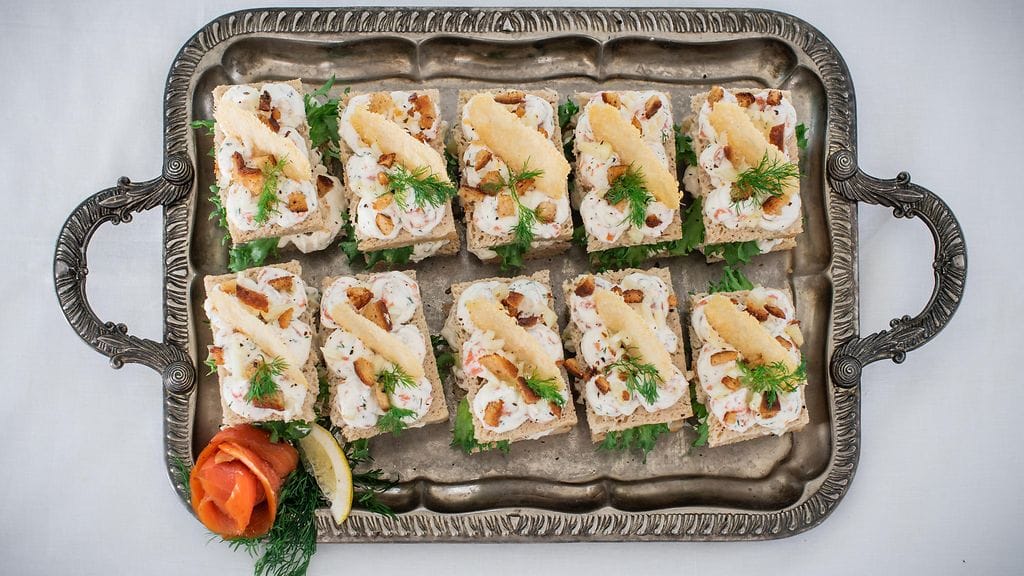 KYLMÄSAVULOHIMOUSSE: Vatkaa kerma vaahdoksi. Lisää smetana ja vatkaa. Lisää hienoksi raastettu parmesan ja sitruunan mehu. Lisää kaikki loput mausteet ja sekoita. Hienonna lohi ja tilli, lisää täytteeseen.
