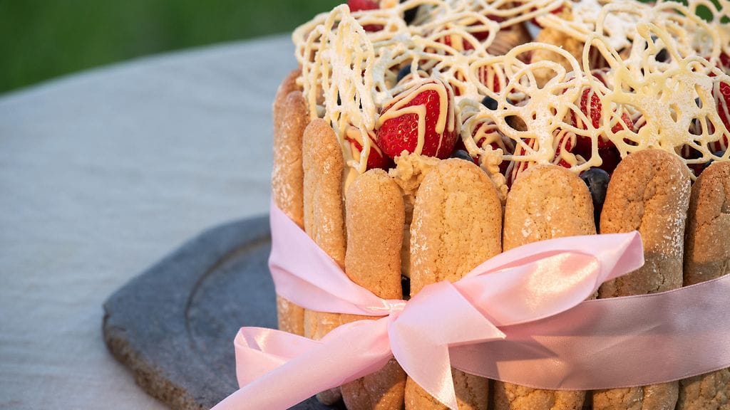 BISCUIT CUILLERE: Laita uuni kuumenemaan 180 asteeseen. Erottele keltuaiset ja valkuaiset. Vatkaa keltuaiset ja puolet sokerista paksuksi vaaleaksi vaahdoksi. Vatkaa valkuaiset kovaksi vaahdoksi omassa kulhossaan ja lisää joukkoon sokeri edelleen vatkaten, kunnes sokeri on liuennut. Siivilöi ja sekoita keltuaisten joukkoon ensin puolet jauhoista ja sitten kolmasosa valkuaisista käännellen (toista: jauhot kahdessa erässä, valkuaiset kolmessa). Pursota keksejä ensiksi pyöreä kakkupohja (mittaa 24cm) sitten lopusta keksejä pyöreällä tyllalla pellille ja ripottele päälle tomusokeria siivilän avulla. Anna kuivahtaa pari minuuttia ja ripottele vielä uudelleen tomusokeria keksien pinnalle. Paista 10-15 minuuttia 180 asteessa. Vie pyöreä kakkupohja pikajäähdyttimeen jäähtymään.