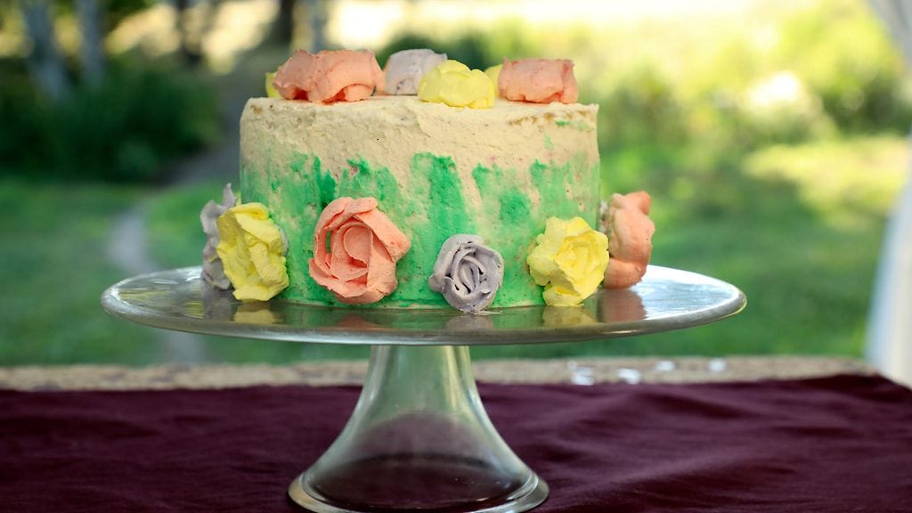 VANILJAINEN KAKKUPOHJA: Sekoita kuivat aineet keskenään. Yhdistä toisessa kulhossa rypsiöljy, kädenlämpöinen maito ja kananmunat. Lisää kuivat aineet nesteiden joukkoon siivilän läpi. Sekoita taikina tasaiseksi. Kaada taikina uunipellin päälle ja paista 175°C uunin alatasolla noin 30 minuuttia. Ota levystä eli stanssaa 4 kpl ympyränmuotoista (halkaisija 16 cm) levyä. Jäähdytä.