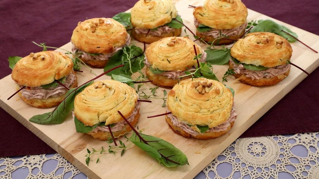 CROISANT-TAIKINA: Kaikkien raaka-aineiden on oltava kylmiä (raaka-aineita voi pitää hetken jääkaapissa tai pakastimessa). Kaulintavoin tulisi olla 20 asteista. Vaivaa koukulla kaulintavoi ja vehnäjauhot nopeasti sekaisin (ei saa lämmetä). Hienonna basilika ja lisää seokseen. Murskaa valkosipulit valkosipulipuristimella ja lisää myös seokseen. Painele rasvaseos litteäksi neliöksi. Valmista taikina. Sekoita kaikki raaka-aineet sekaisin ja vaivaa hyvä sitko. Muotoile taikinasta neliö (isompi kuin rasvaneliö). Aseta rasva vinosti keskelle taikinaneliötä. Nosta taikinan kulmat rasvan päälle. Painele taikina ohuemmaksi. Kaulitse taikina suorakaiteen muotoiseksi (noin 1,5 cm vahvuiseksi) – taittele kolmeen osaan (Puhdista jauhot rasvan päältä). Laita taikina kylmään lepäämään 10 minuutiksi. Toista tämä vielä kaksi kertaa. (Lähde mtv3 Koko Suomi leipoo)
