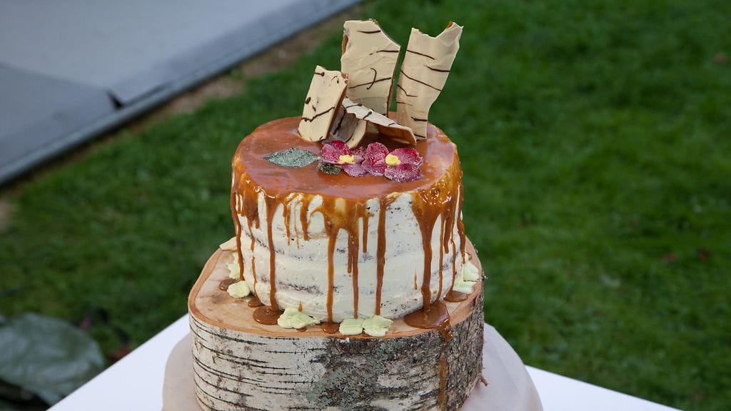 Tarjoile kakku korkeajalkaiselta kakkulautaselta tai koivukiekolta.