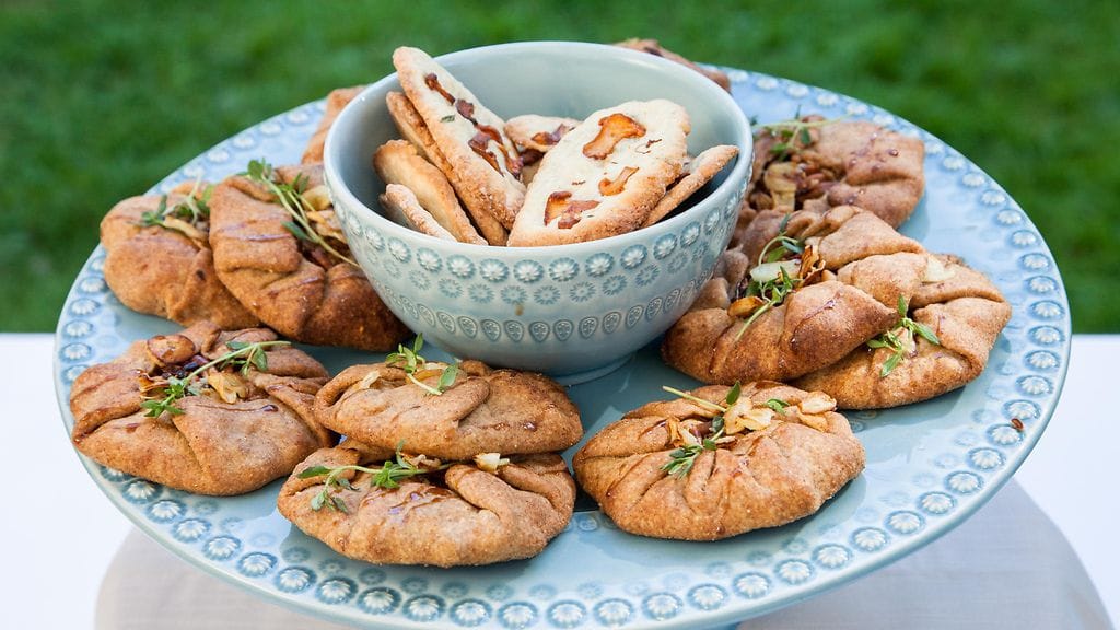 Sekoita taikinan jauhot ja suola keskenään. Nypi ripeästi joukkoon kuutioitu voi. Sekoita kylmä vesi taikinaan nopeasti vaivaamatta liikaa ja kääri taikina tuorekelmuun. Anna taikinan vetäytyä jääkaapissa/jäähdyttimessa täytteen teon ajan. Laita uuni lämpenemään kiertoilmalle 200 asteeseen.
