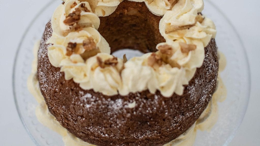 Paahda mantelilastuja hetken aikaa pannulla ja sekoita taikinan joukkoon. Kaada taikina voideltuun kahvikakkuvuokaan (tilavuus n. 1,4 l) ja paista 180 asteisessa uunissa noin 40 minuuttia.Jäähdytä kakku ja kumoa vuoasta.