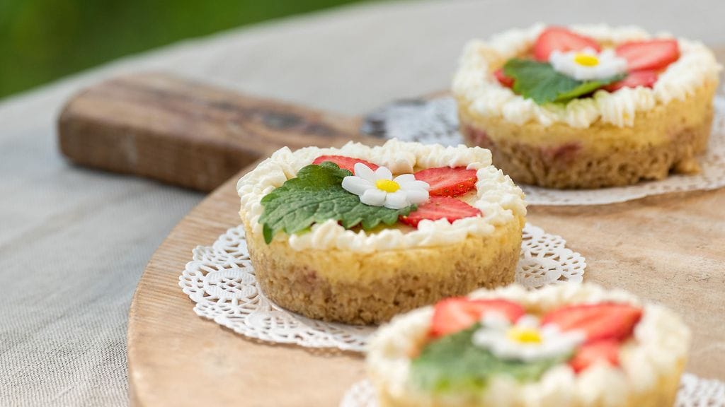 KAURAMURUPOHJA: Hienonna kaurahiutaleita kevyesti tehosekoittimessa. Sulata 105 g voita pannulla, ja sekoita joukkoon kaurahiutaleet sekä sokeri. Paahda hiutaleita pannulla niin kauan, kun hiutaleet ovat saaneet hieman väriä pintaansa ja kaikki voi on imeytynyt niihin. Sekoita hiutaleita koko paahtamisen ajan, etteivät ne pala. Lisää loput 45 g voita pannulle ja anna sulaa kaurahiutaleiden joukkoon. Painele kaurahiutaleet tasaisesti pienien piirakkavuokien pohjille. Käytä apuna lusikkaa, sillä hiutaleet ovat kuumia. Jätä vuoat sivuun jäähtymään. Laita uuni kuumenemaan 150 astetta (kiertoilmauuni).