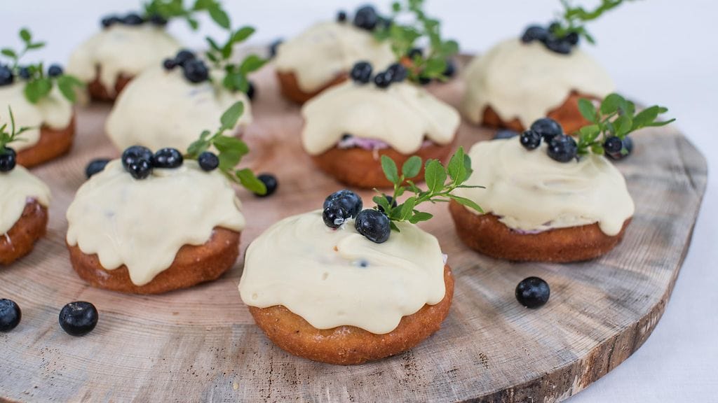 TÄYTTEEN VALMISTUS: Laita liivatelehdet likoamaan kylmään veteen. Vaahdota vispikerma kuohkeaksi vaahdoksi. Notkista tuorejuusto ja lisää sokerit. Sulata liotetut liivatelehdet kuumennettuun sitruunamehuun. Sekoita ohuena nauhana liivateliemi tuorejuuston joukkoon. Yhdistä tuorejuusto, vispikerma ja mustikat varovaisesti sekoittaen. Laita valmis massa kylmään odottamaan.