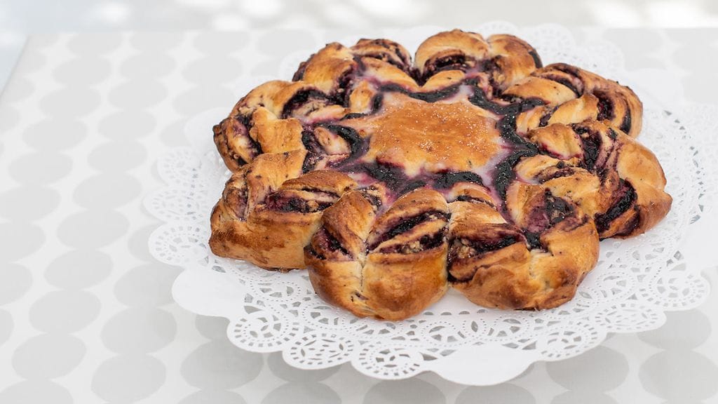 VALMISTUS: Lämmitä maito kädenlämpöiseksi. Liota hiiva maidon joukkoon. Lisää sokeri, kananmuna, kardemumma ja 2/3 osa vehnäjauhoista. Sekoita raaka-aineet ja aloita taikinan vaivaus. Lisää loput jauhot ja vaivaa taikinaksi. Lisää suola ja pehmeä voi. Vaivaa taikina valmiiksi, kimmoisaksi taikinaksi. Annan taikinan levätä pöydällä muovin alla noin 10 minuuttia. Tee yksi kranssi.
