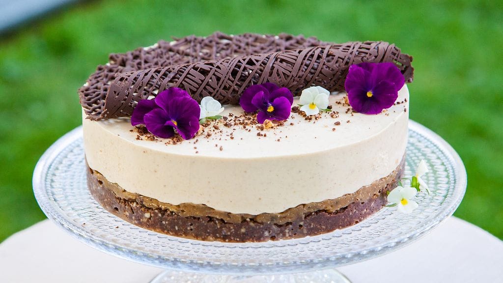 4. Vuoraa 18 cm irtopohjavuoan pohja leivinpaperilla ja laita reunaan reunakalvo. Levitä pohja tasaisesti vuokaan.
